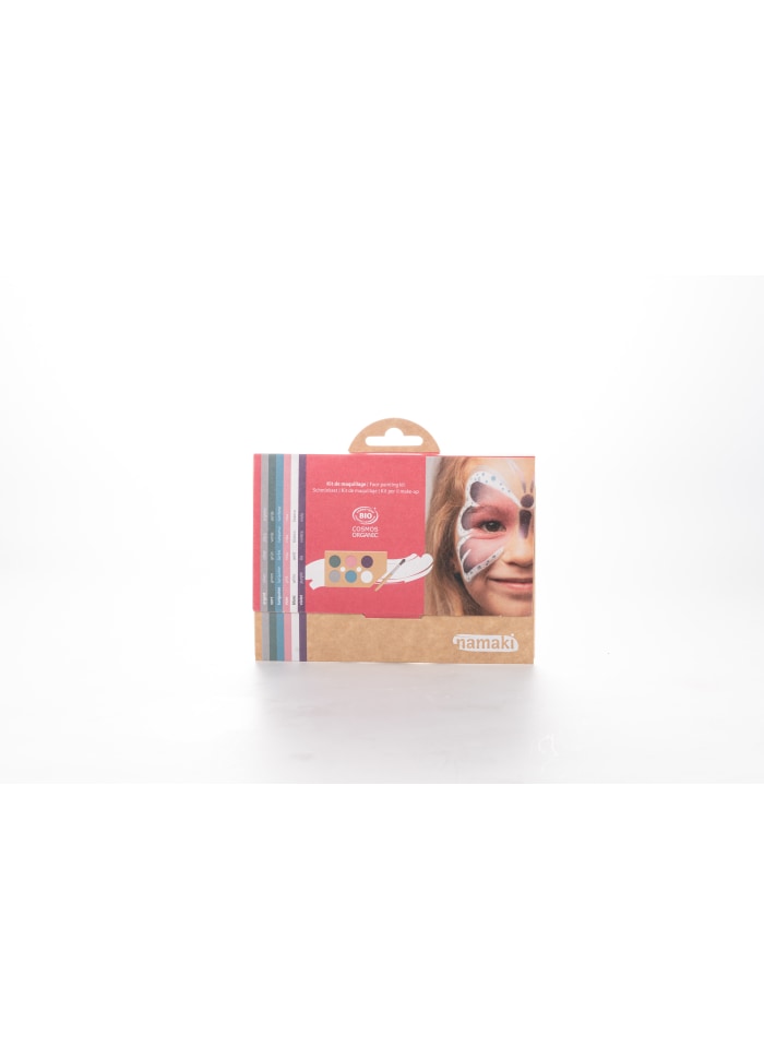 Oplev den meget farvede regnbueverden med Namaki, og gør dig selv op på få minutter som prinsesse, fe, sommerfugl, havfrue, ridder, drage, nisse og meget mere! Dette vandbaserede, økologisk certificerede og allergivenlige ansigtsmalingssæt indeholder alt, hvad du behøver for at have det sjovt. 6 farver på en palet (Turkis, pink, hvid, sølv, grøn, lilla), en kosmetik pensel og 5 vejledninger man kan male efter.