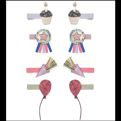 8 flotte hårclips med både balloner, cupcakes og andre festligheder fra Mimi & Lula. Brug dem til fødselsdagsfest eller bare til et ekstra pift til hverdag.