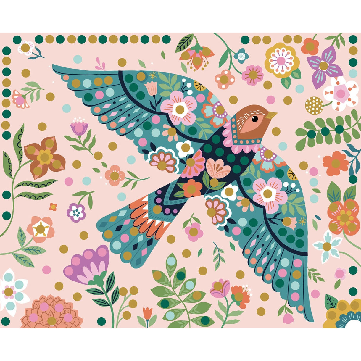 4 fantastiske illustrationer af dyr, som du selv kan dekorere med 500 farverige rhinsten og 320 guldklistermærker.