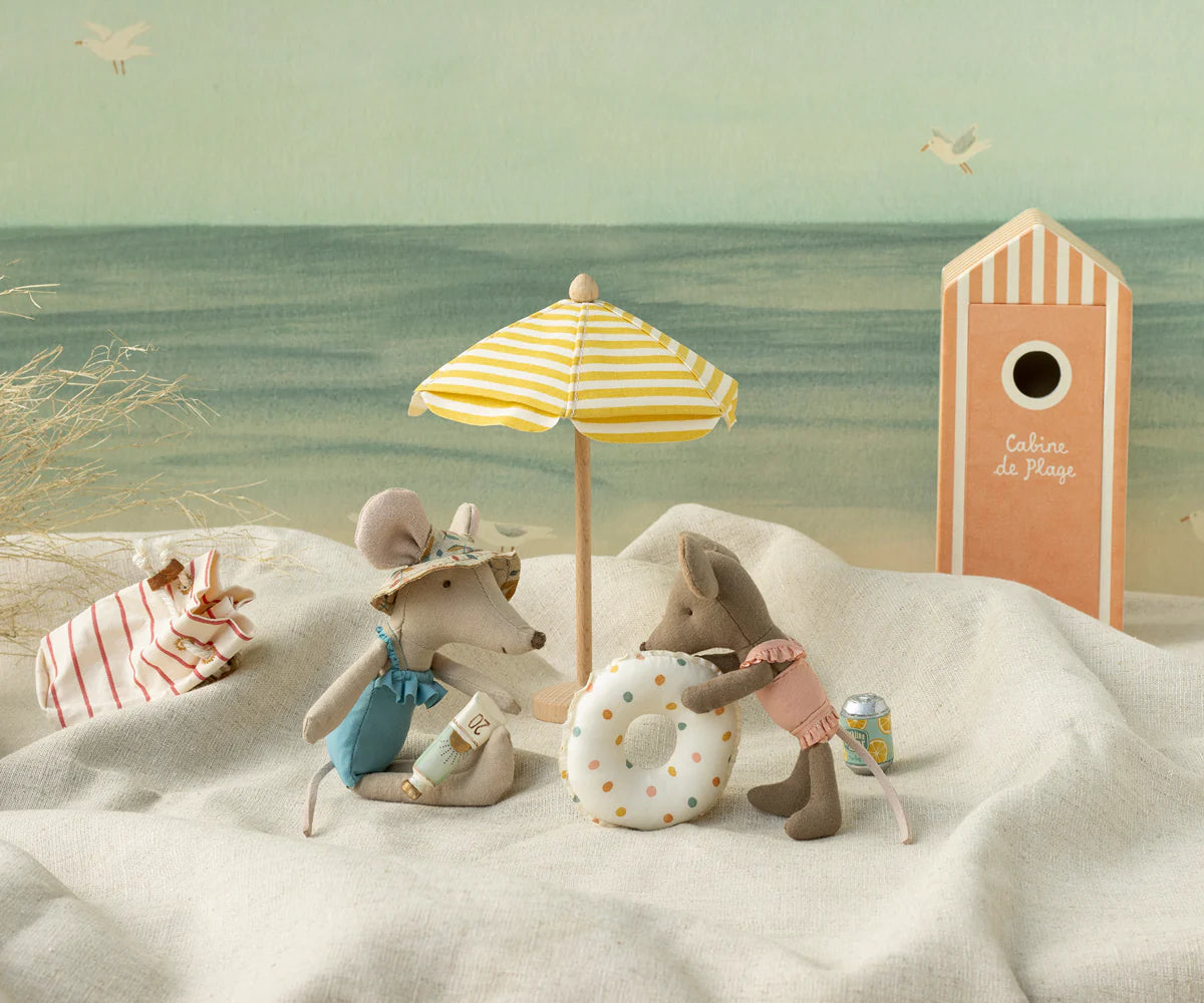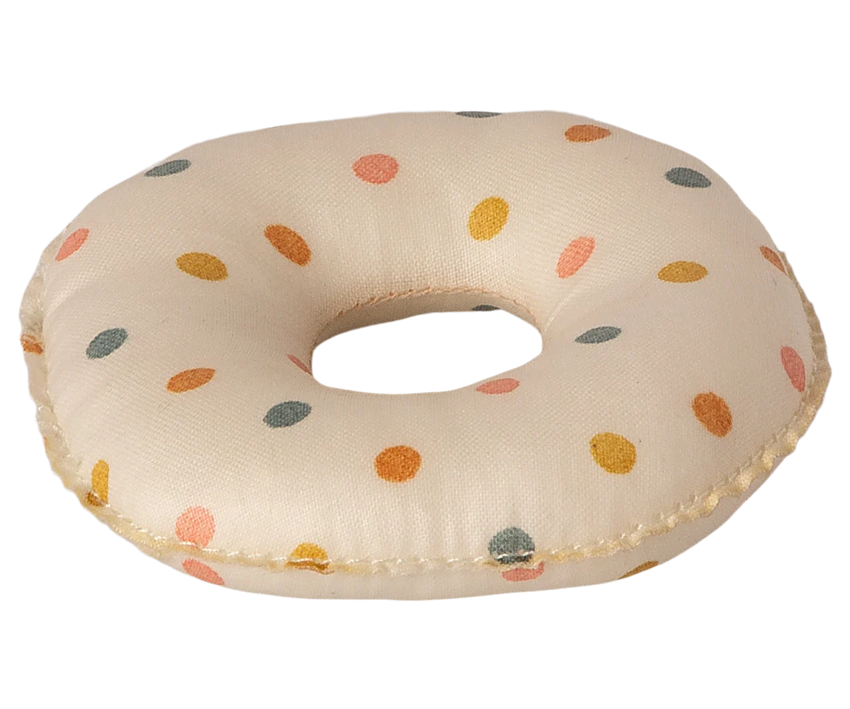 Ferie tid. En prikket badering lavet i belagt stof for et autentisk look. Den er ikke vandtæt, kun i din fantasi kan den flyde på vand. Den passer til mus i størrelse baby og lillesøster og lillebror.