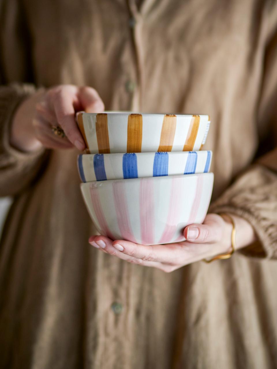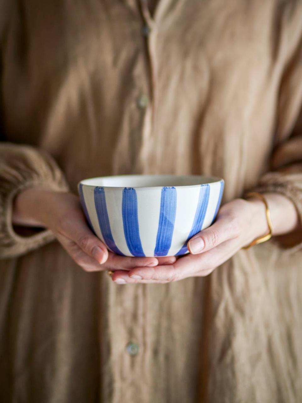 Begonia Skålen fra Creative Collection er i stentøj med et håndmalet stribet design. Den er ideel til både flot servering og dekoration. Da skålen er håndmalet vil hver skål variere og være unik.