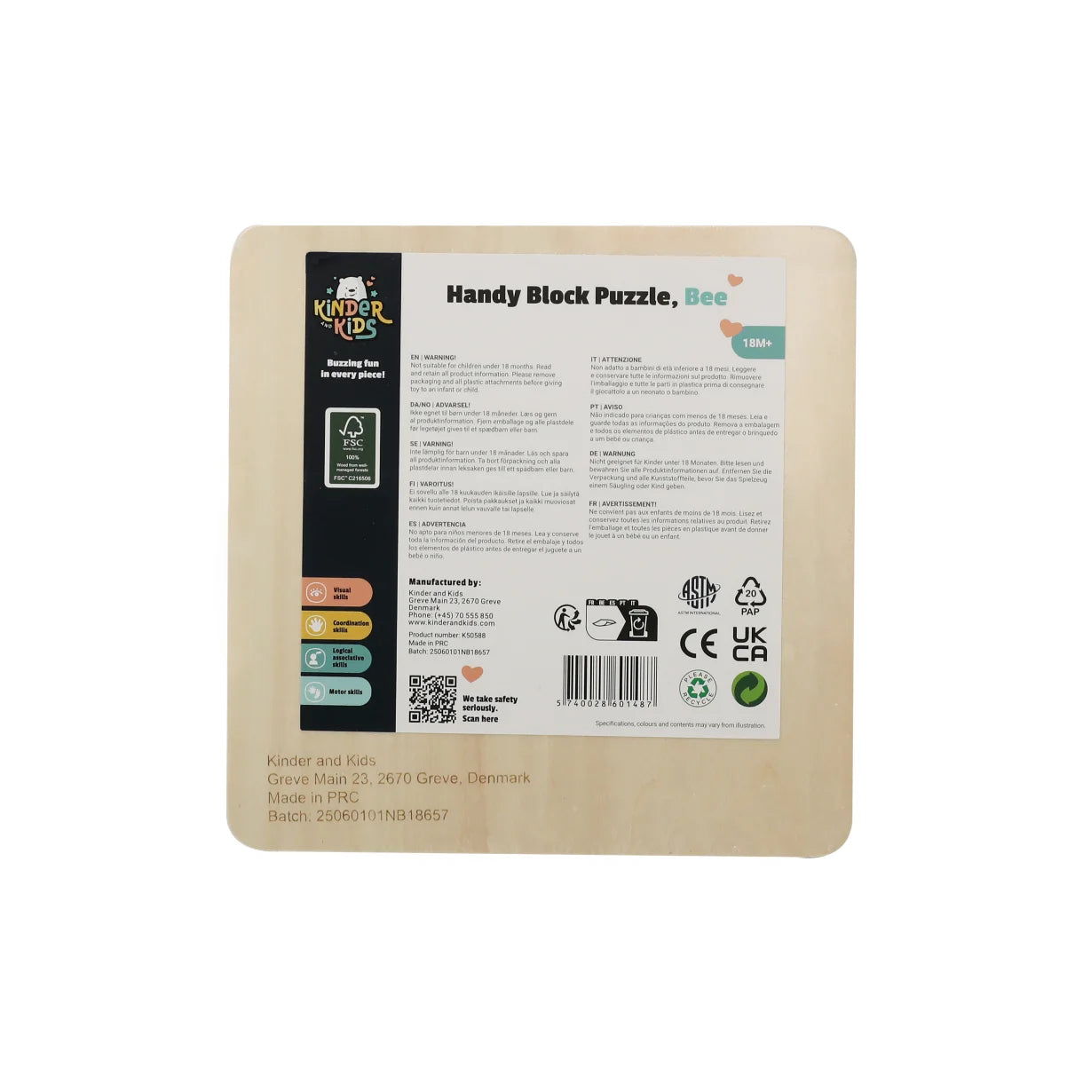 Puslespil i flotte farver med en sød bi fra Kinder and Kids.