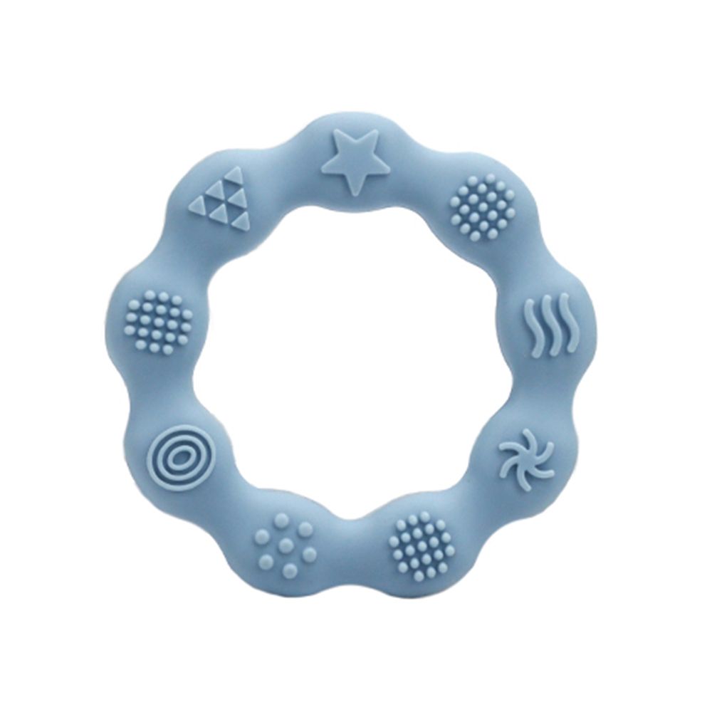 Silikone bidering med forskellige taktile overflader. God til barnets kløende gummer og nem at holde ved for barnet selv. Fødevaregodkendt silikone. LFGB godkendt.