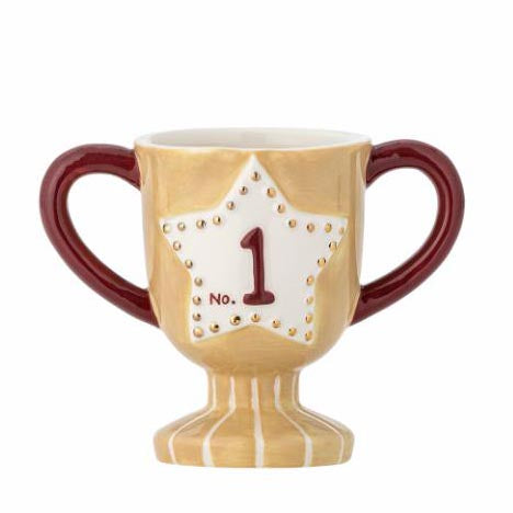 Trofæ-koppen fra Bloomingville MINI er formet som en lille pokal. Den er dekoreret med en stjerne og teksten "No. 1" – en sjov og dekorativ tilføjelse til hverdagens drikke og festlige øjeblikke.