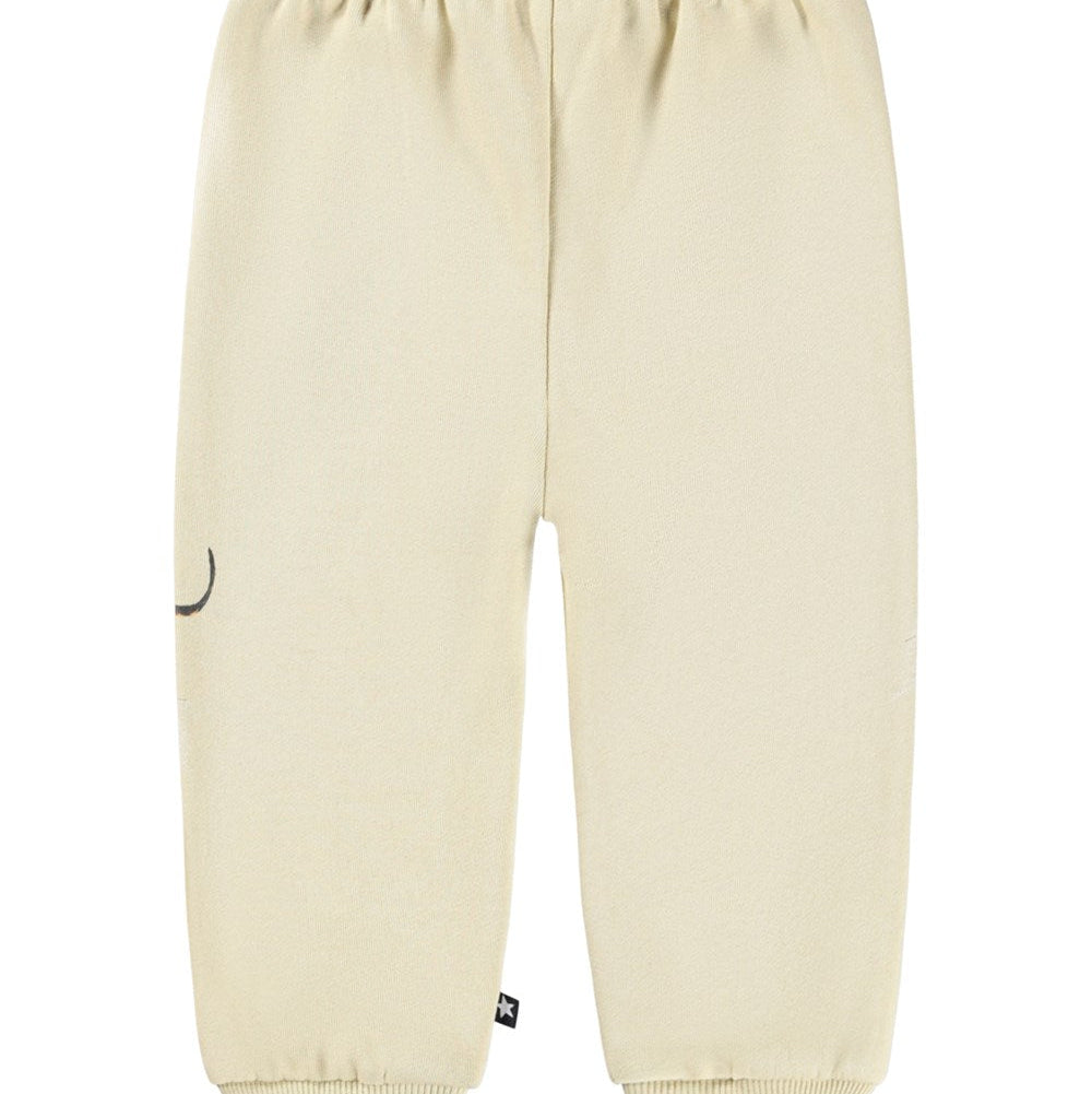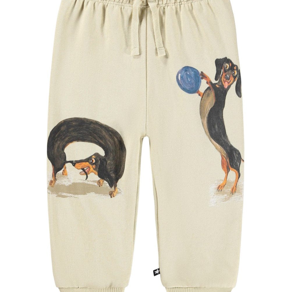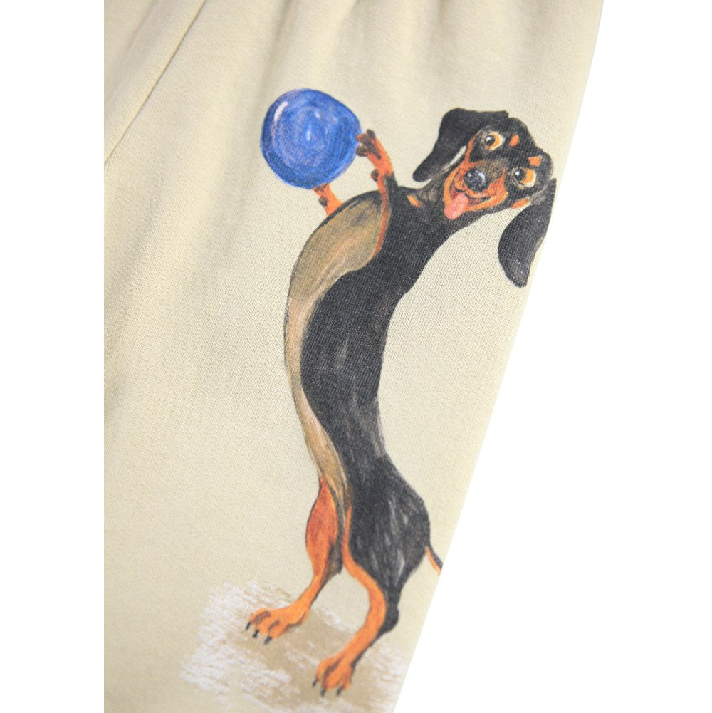 Bløde bukser i økologisk bomuld til de mindste. Bukserne er beige med print af gravhunde. Bukserne har elastik og bindebånd i taljen samt ribkanter ved benene. De er nemme at tage af og på og giver masser af bevægelsesfrihed. Kombinér med matchende sweatshirt for et komplet outfit.