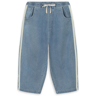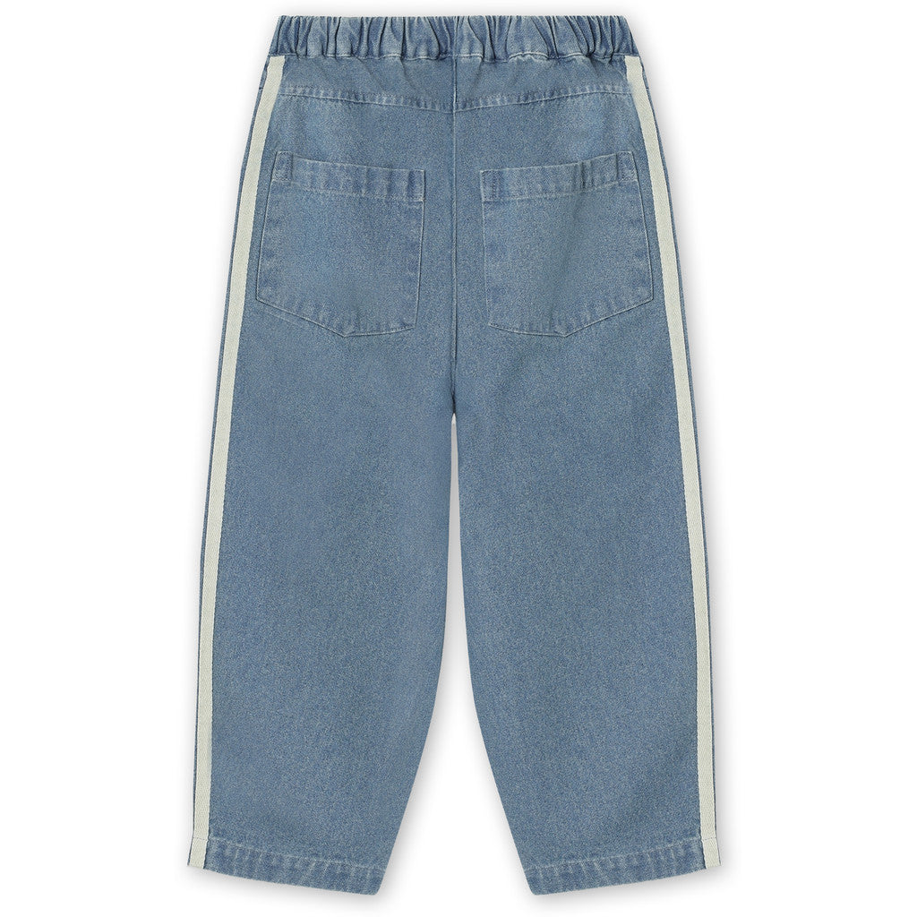Denimbukser med elastisk linning og justerbar snøre i bomuld. Bukserne har en rummelig pasform, der giver komfort og bevægelsesfrihed - perfekt til leg og hverdagsbrug. De har praktiske sidelommer og er detaljeret med sporty bomuldsstriber langs siderne.