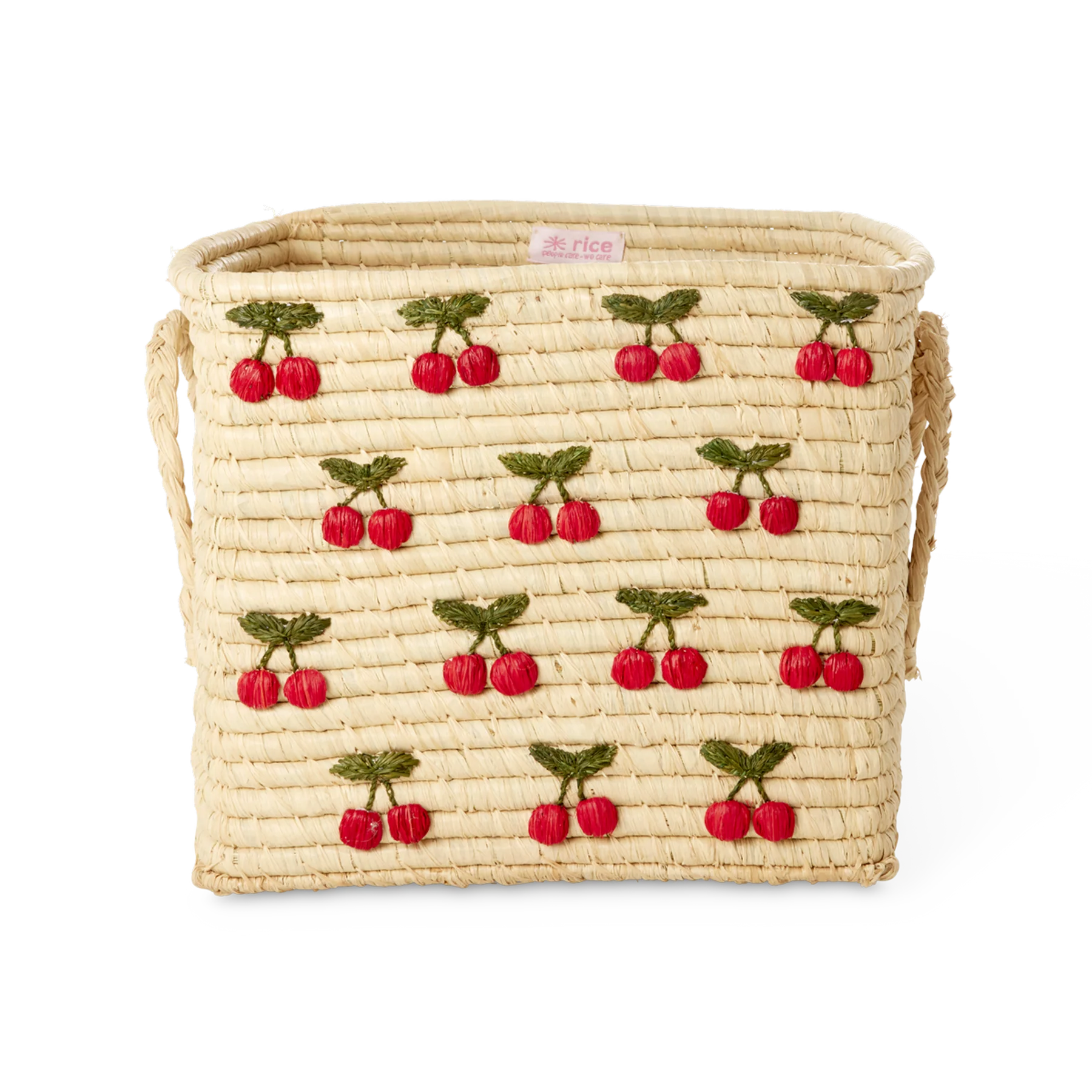 Firkantet Raffia Kurv - Natur - Small Cherries