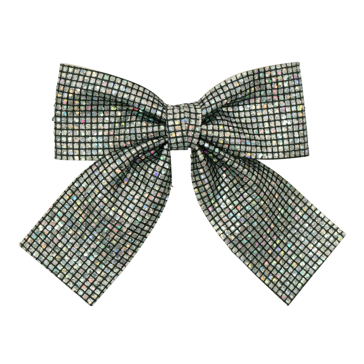 Stor hårsløjfe med mosaik sølvglimmer i den helt rette disco-ånd.