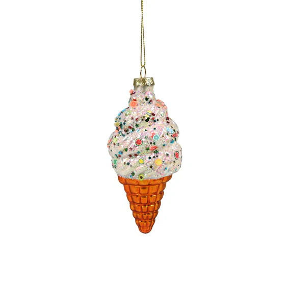 Lækker glimmer is med bær og frugter som julekugle.
