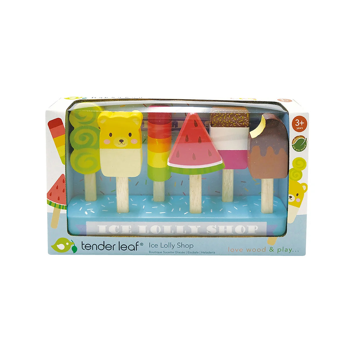 Sjov og farverigt udvalg af ispinde med holder.