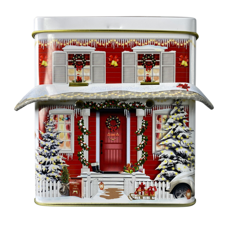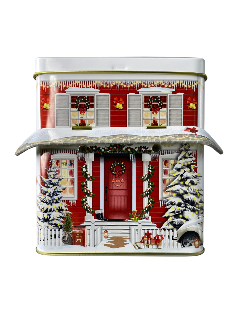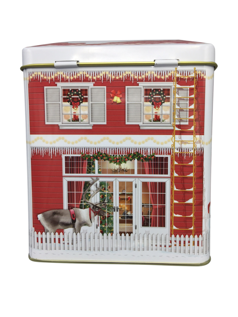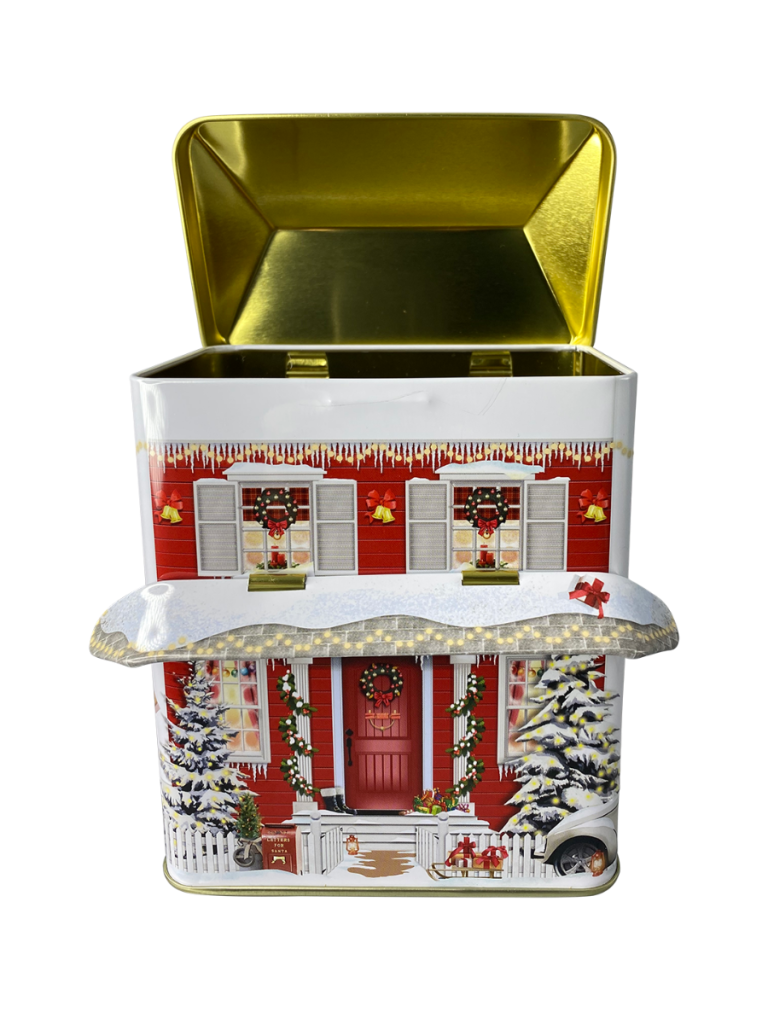 Smukt byhus som dåse til opbevaring af fx kaffe, the, småkager, eller hvad du lige synes passer perfekt til denne søde dåse.