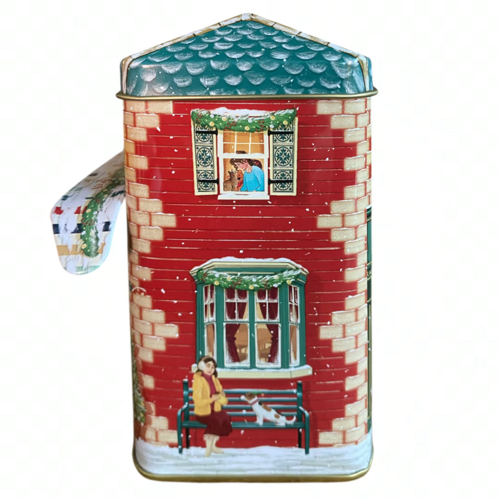Smukt byhus som dåse til opbevaring af fx kaffe, the, småkager, eller hvad du lige synes passer perfekt til denne søde dåse.