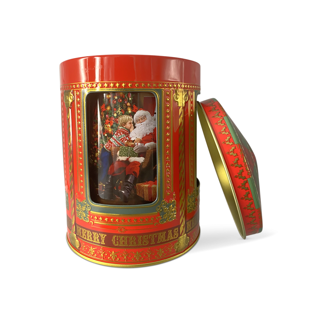 Julemand spille kage dåse, der kan rumme mange af julens lækre småkager.