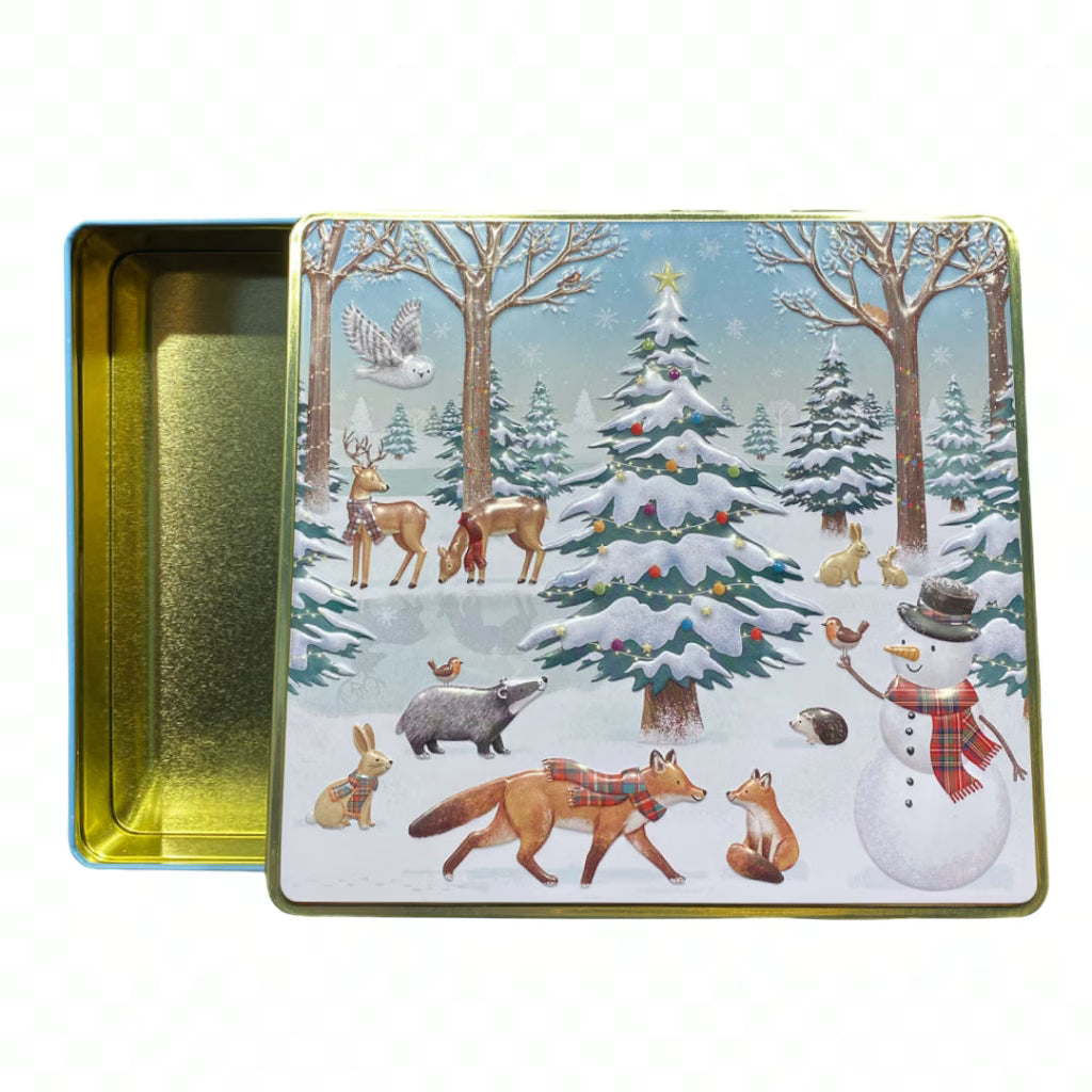Skovens julekagedåse er perfekt til småkager og andre lækkerier, og kan ligeledes anvendes gaveæske med et smukt bånd om.