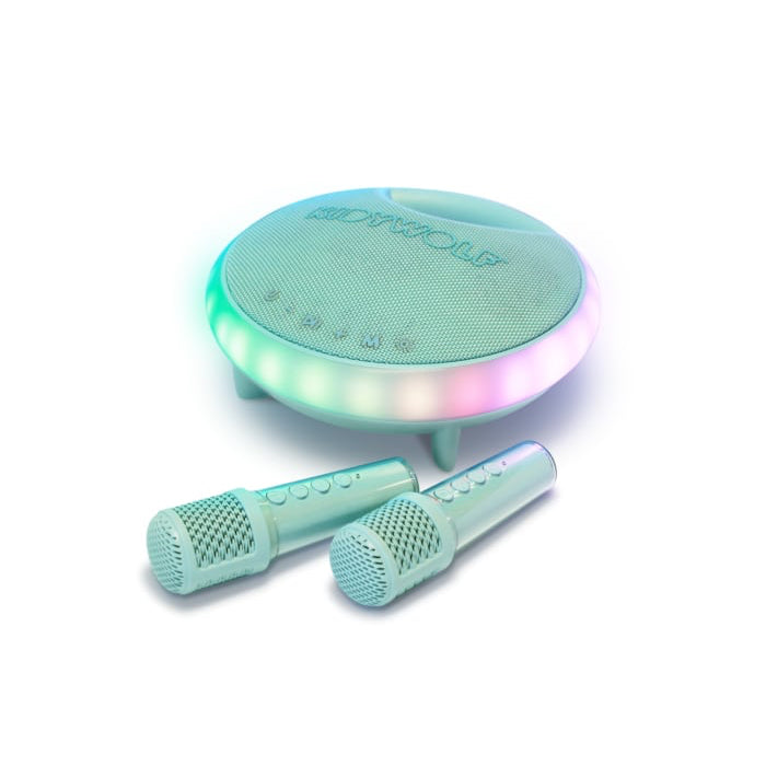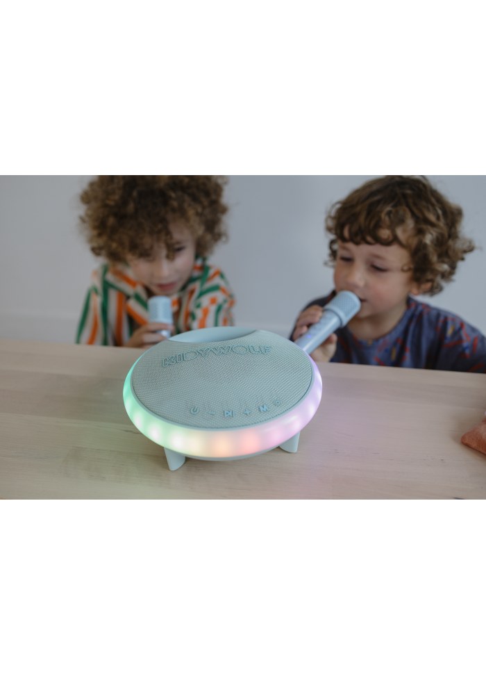 Gør enhver fest til en uforglemmelig begivenhed med KIDYKARAOKE, den bærbare karaokehøjttaler, der kombinerer kraftfuld lyd og lyseffekter. Udstyret med to trådløse mikrofoner og et væld af sjove funktioner forvandler denne højttaler ethvert sted til en scene. Med sin 40W-højttaler og varierede lyd- og lyseffekter er KIDYKARAOKE den ideelle ledsager til dine fester, uanset om du er hjemme eller på farten. Slip din indre stjerne løs med KIDYKARAOKE! De to trådløse mikrofoner giver mulighed for episke duetter, mens stemmemodifikatoren giver 3 sjove effekter til at personliggøre din optræden: høj, lav og original. Dertil kommer de flerfarvede og retningsbestemte lyseffekter, som giver en endnu mere festlig og opslugende atmosfære.