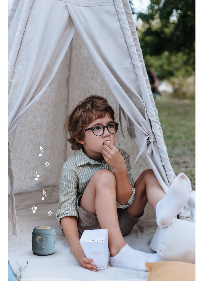 KIDYMUSIC højttaleren er designet til at hjælpe dit barn til at indleve sig i deres fantasiverden. Højtaleren kommer i form af tre forskellige karakterer, der hver har deres egen historie, som kan inspirere dit barn til at udforske forskellige aspekter af verden.