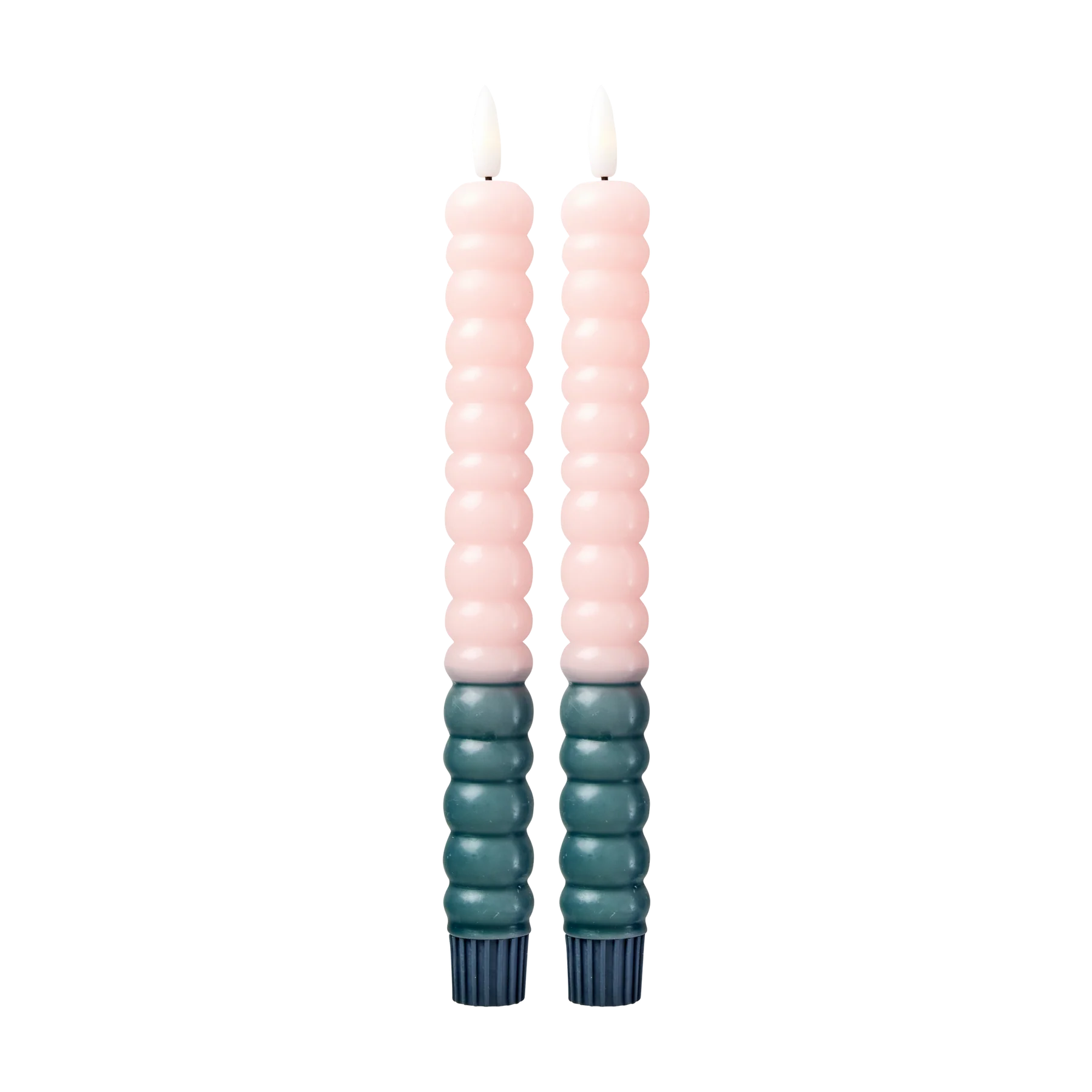 Fine snoede LED lys i den skønneste farvekombination – mørk sand og dueblå. Lysene kommer i sæt af to og vil uden tvivl skabe hygge med deres livagtige, flimrende flamme. Alt de skal bruge er to AAA-batterier (ikke inkluderet).