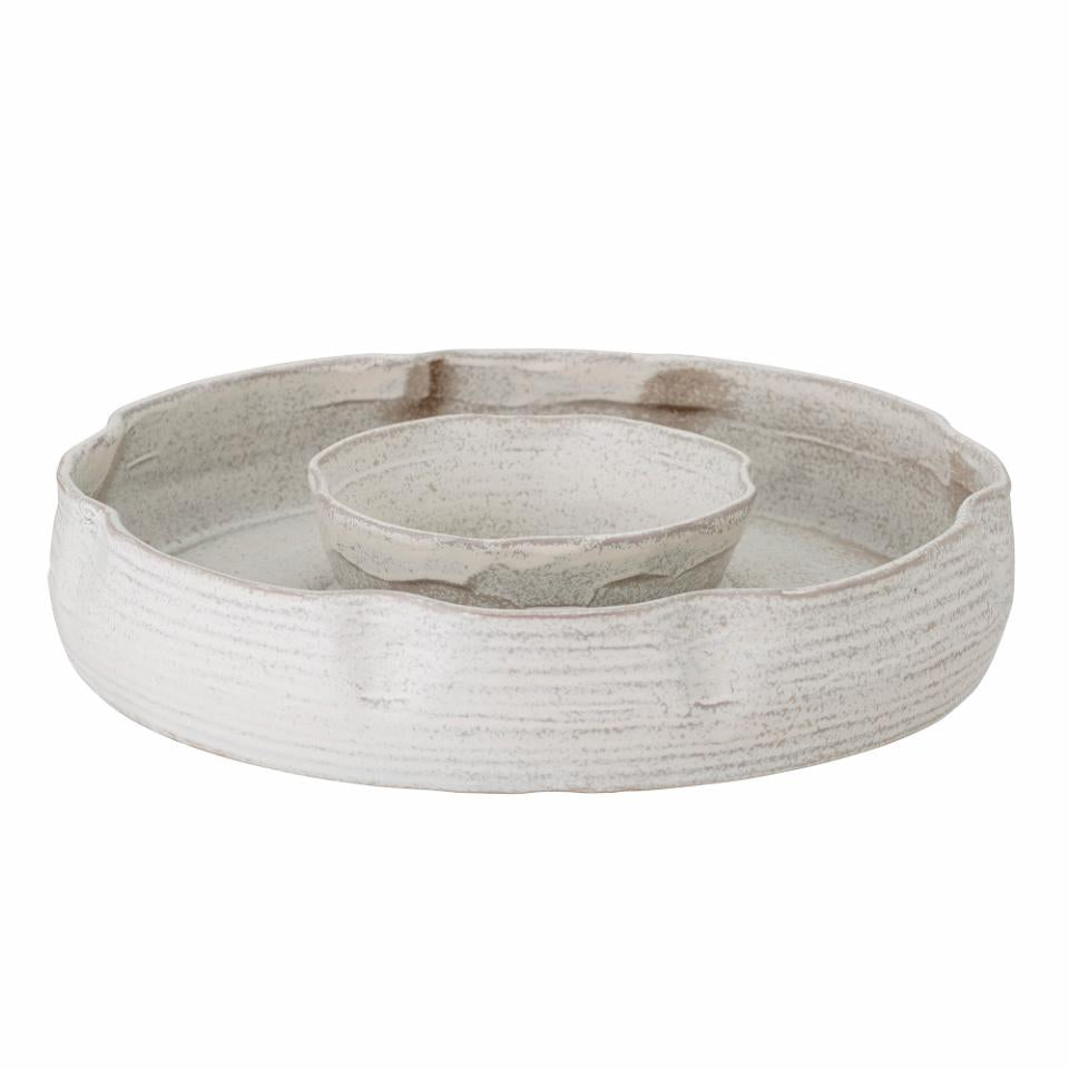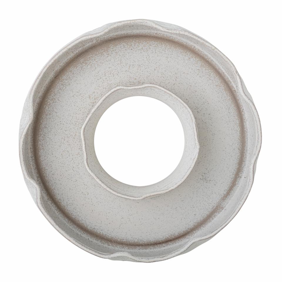 Leda faddet fra Bloomingville er et lækkert rundt fad med et hul i midten lavet af gråt stentøj. Du kan både bruge den til at servere mad i og til dekoration.