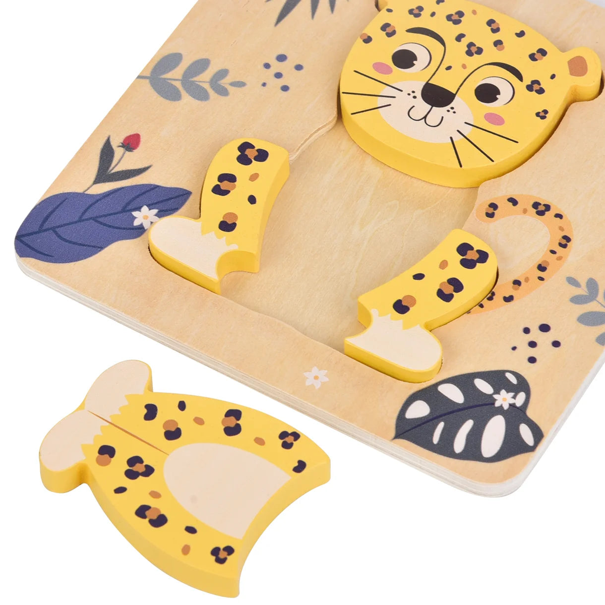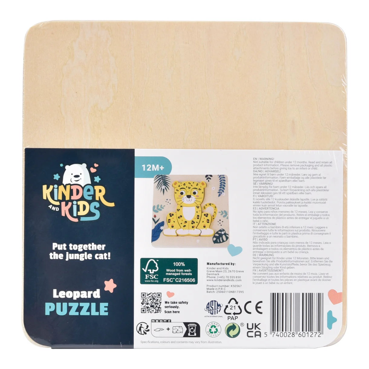 Puslespil i flotte farver med en sød leopard fra Kinder and Kids.