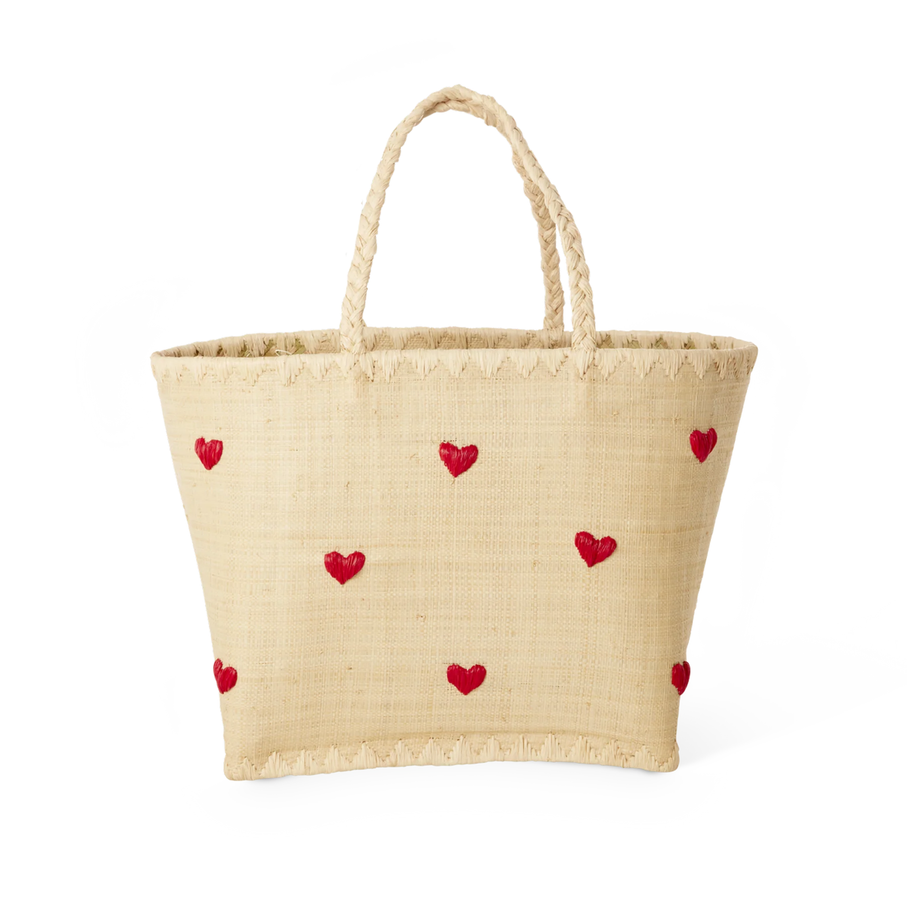 Den sødeste, lille taske med røde hjerter og flettede håndtag