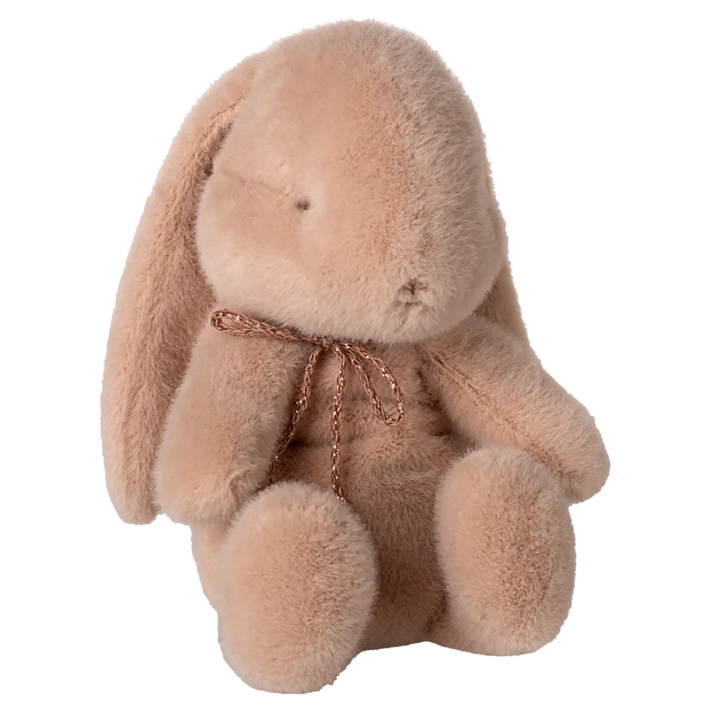 Denne lille kanin kommer i meget blødt og unikt plysstof i en varm beige nuance. Den har en smuk sløjfe om halsen lavet i en særligt Maileg metervare. Kaninen har et sødt udseende og føles fantastisk mod huden. Den indbyder til masser af knus og kram vil snart være nogens allerbedste ven.