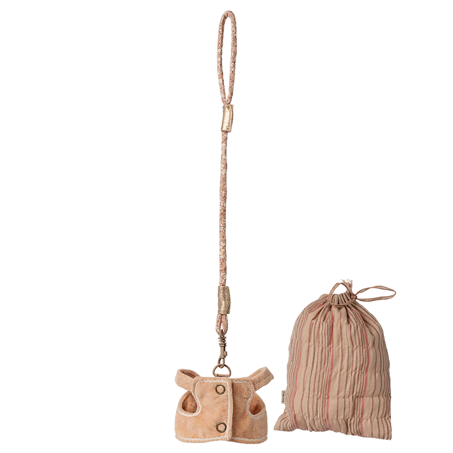 Hvis du ønsker at tage din sovende kanin med ud på en lille gåtur, har du brug for sele og snor. Dette lille sæt er pakket i en stofpose, som du kan bruge til at opbevare tilbehøret når det ikke er i brug.