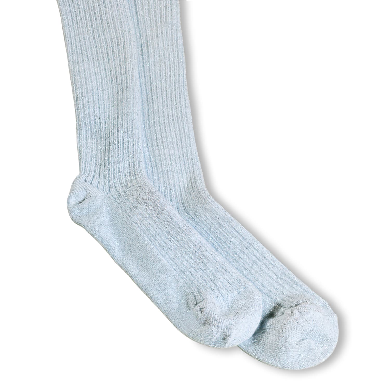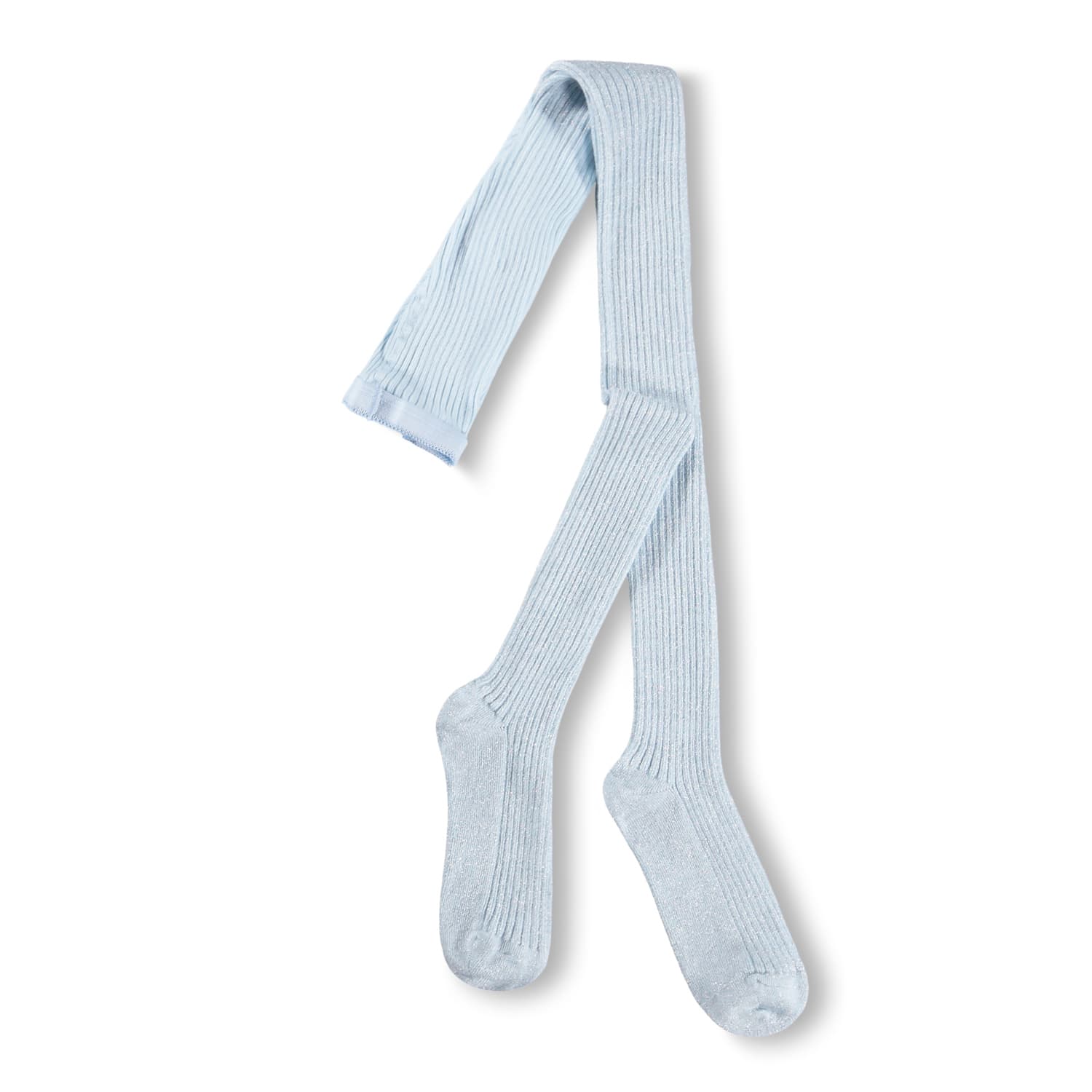 Et par lyseblå strømpebukser i rib med glitter, med bred elastik i taljen for den optimale pasform.