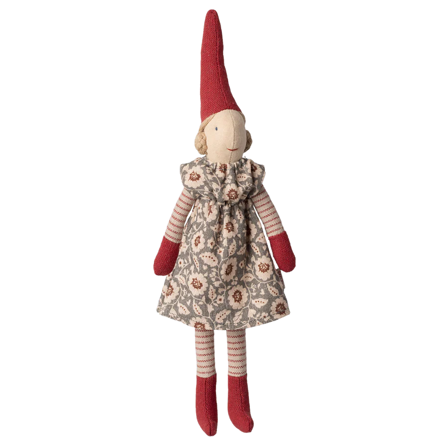 Mailegs nissekollektion indeholder mange forskellige styles - alle klædt i flot juletøj lavet af eksklusive materialer. De er søde og kan mikses og matches på tværs af størrelser og kollektioner. Størrelse 1 har magnet i hænder og venstre fod.