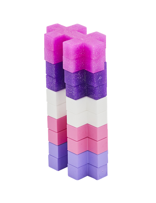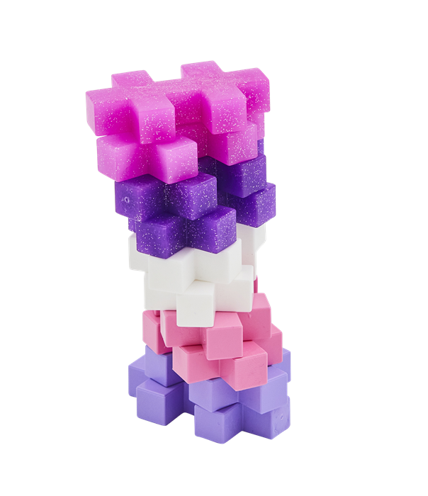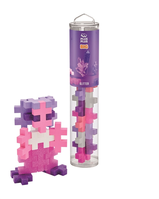 Plus-Plus BIG er perfekt til mindre hænder eller større idéer. Dette rørsæt indeholder 15 dele i forskellige farver som glitterrosa, glitterlilla, hvid, pastelrosa og pastellilla