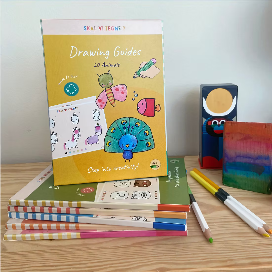 Hver trin-for-trin guide inviterer til kreativ leg og fordybelse. Børn lærer at omsætte former til genkendelige motiver og kan