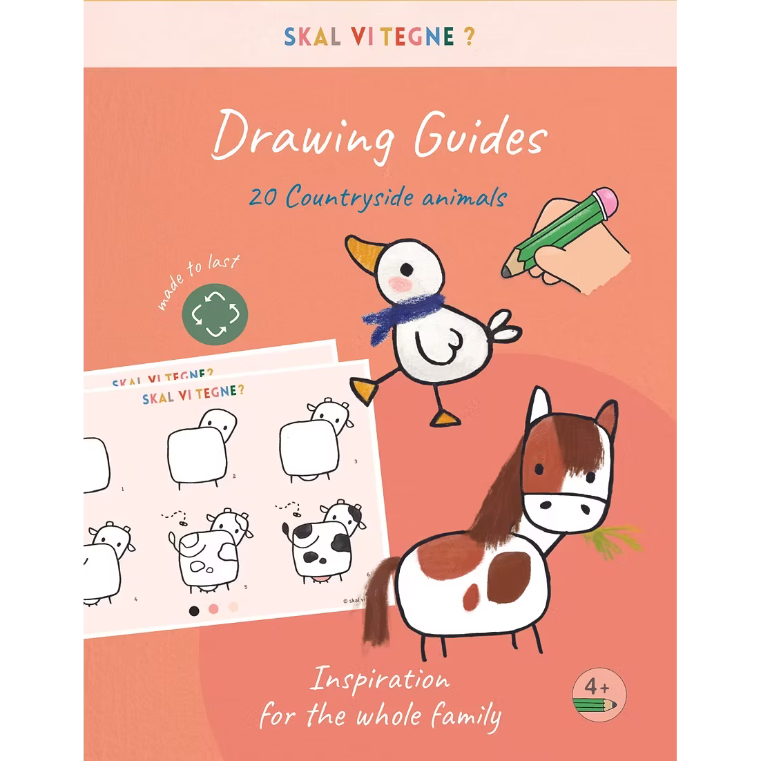 Denne tegneguides-pakke indeholder 20 tegneguides. Hvert motiv er opdelt i enkle trin, så børn nemt kan følge med og