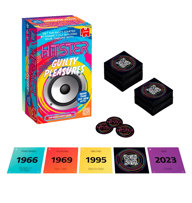 Gør klar til en aften fuld af latter, sang, dans og nostalgiske øjeblikke med Hitster: Guilty Pleasures – spillet, hvor du opdager (eller indrømmer) alle de sange, du kan udenad, men måske helst ikke vil indrømme, at du elsker.