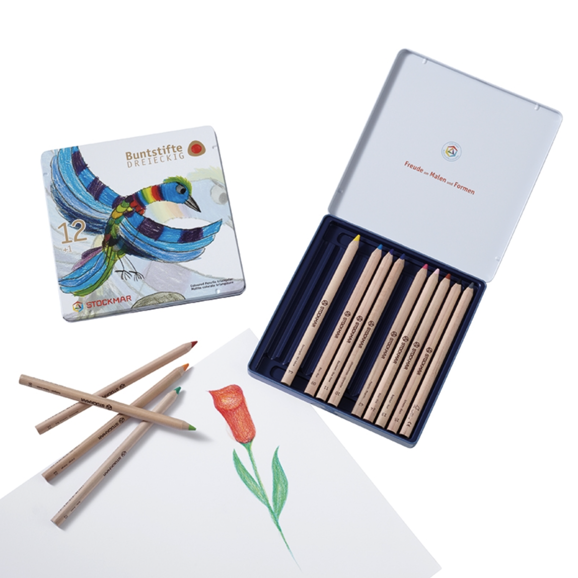 Stockmar Farveblyanter 12+1 stk - Trekantede - i metalæske