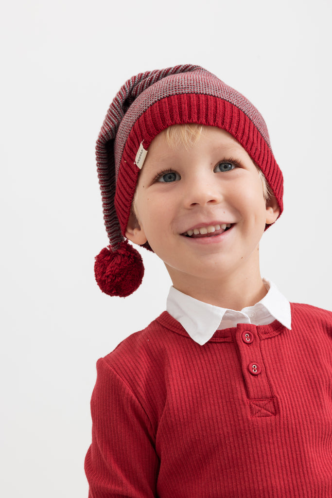 Ribstrikket langtærmet t-shirt med stolpe knaplukning.