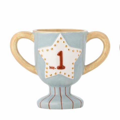 Trofæ-koppen fra Bloomingville MINI er formet som en lille pokal. Den er dekoreret med en stjerne og teksten "No. 1" – en sjov og dekorativ tilføjelse til hverdagens drikke og festlige øjeblikke.